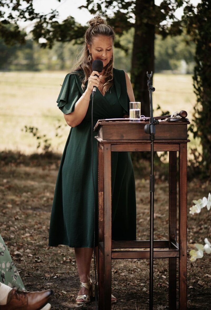 Met mijn achtergrond in interviewen, spreken en verbinden, maak ik ceremonies die voelen als een warme jas.